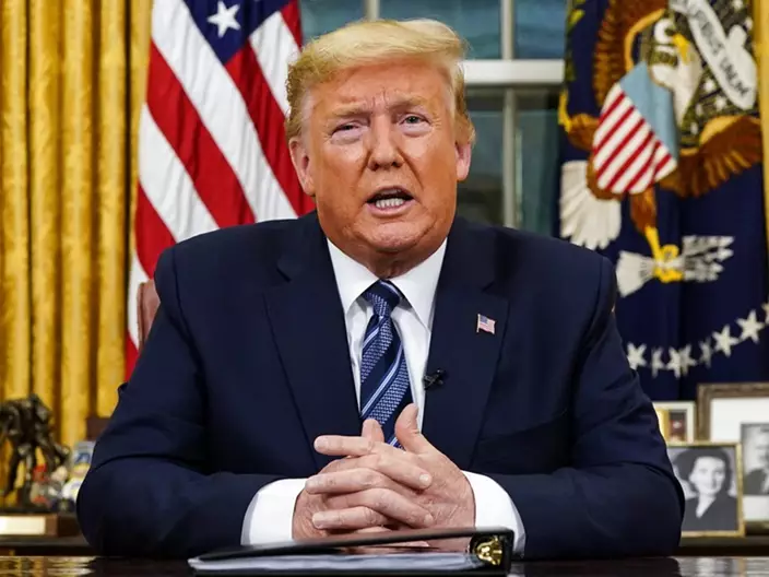 美國總統特朗普在白宮就新型冠狀病毒肺炎疫情發表全國講話。特朗普宣布,自星期五開始,美國將對除英國外的所有歐洲國家實施旅行禁令,為期30天。