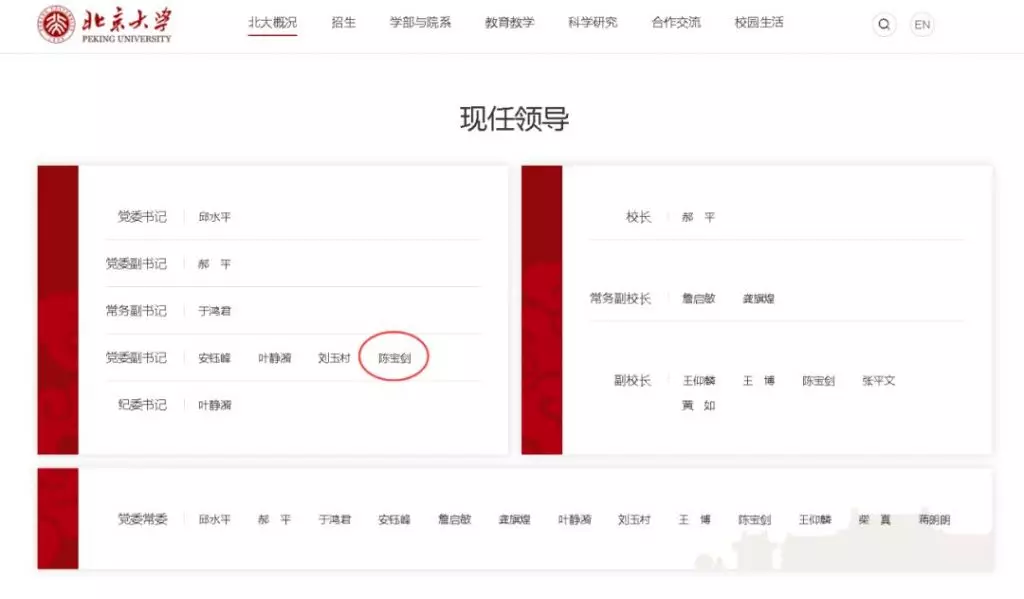 此外,北京大學黨委發佈通知,教育部黨組與北京市委商得一致,2月11日研究決定,陳寶劍任校黨委副書記。目前北大官網已更新。