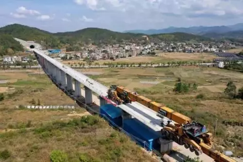 贛深鐵路項目架梁施工正有序推進。(南方日報 陳浩攝)