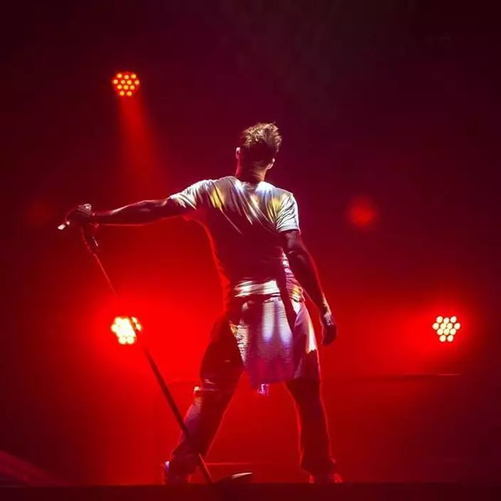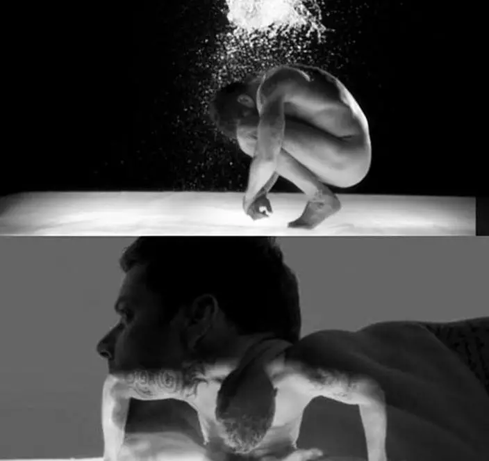 他在社交網站上載一張拍攝巡迴影片時拍的照片,看到他全裸沉在水裡展現一身肌肉和紋身。