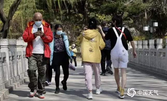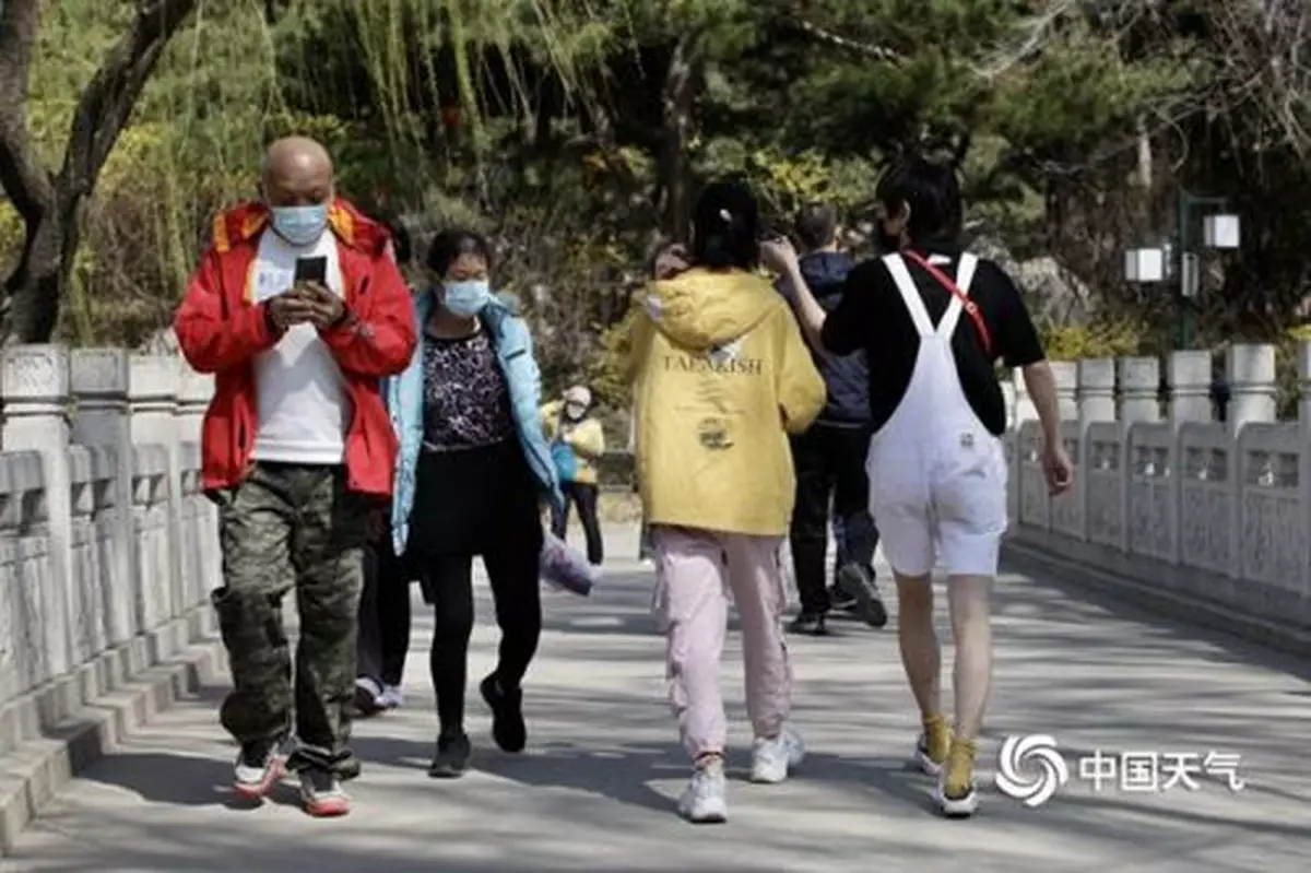 △3月22日,北京天氣晴暖,市民開啟「亂穿衣」模式