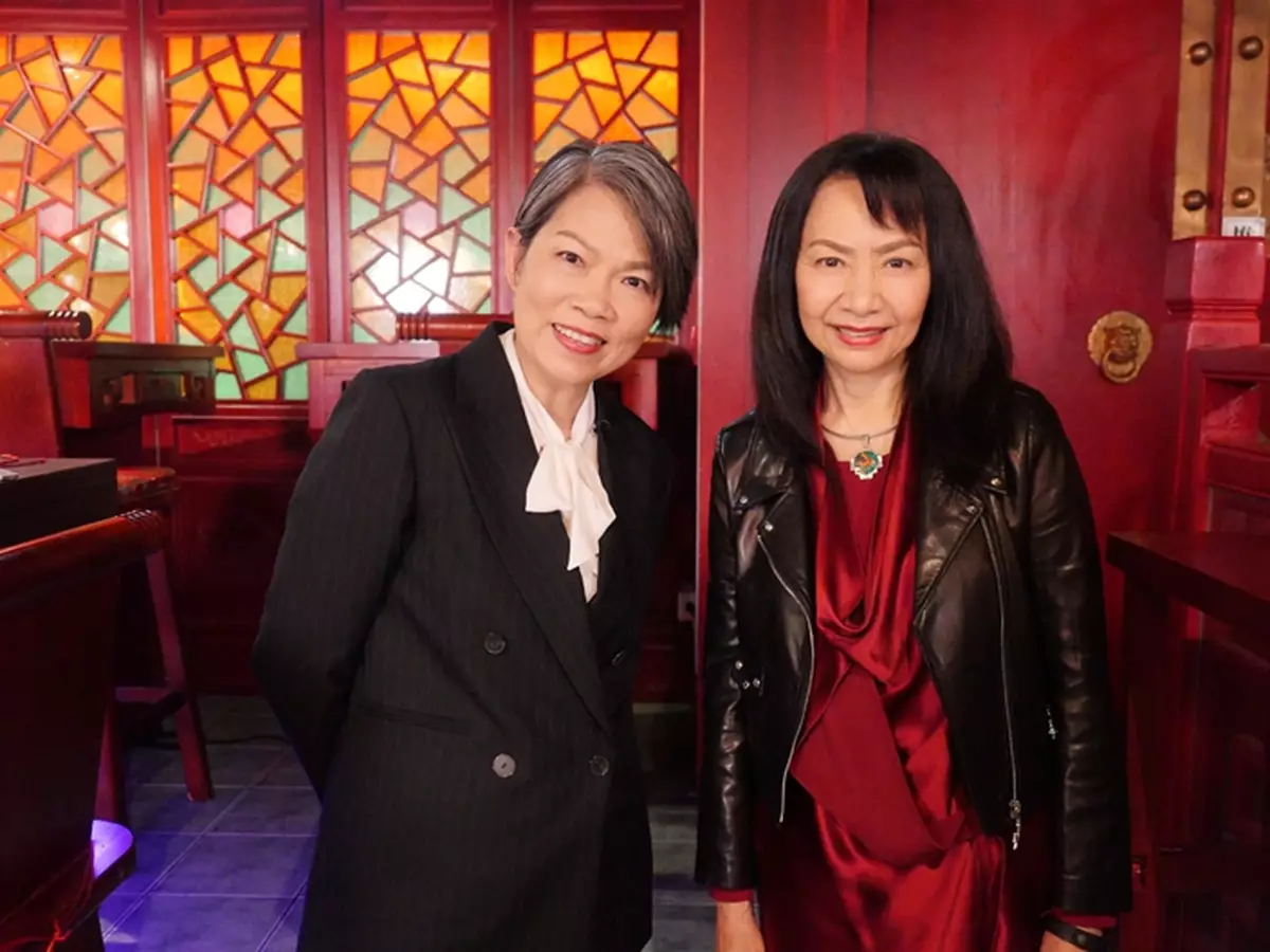 區嘉雯接受《金像女情》主持何嘉麗訪問。