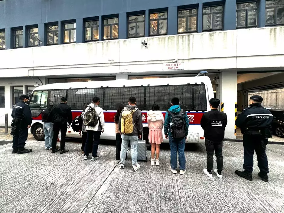 行動中,警方共拘捕十九人,包括六名本地男子、一名本地女子、一名外籍女子、四名內地男子及七名內地女子,年齡介乎二十四至八十四歲,分別涉嫌「違反逗留條件」、「協助及教唆他人違反逗留條件」、「逾期居留」、「逾期居留人士接受僱傭工作」及「僱用不可合法受僱的人」。其中四名男子為被通緝人士。