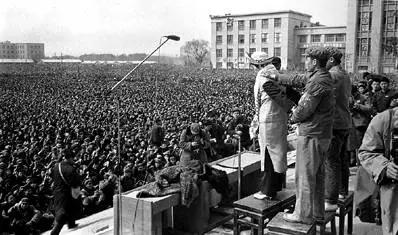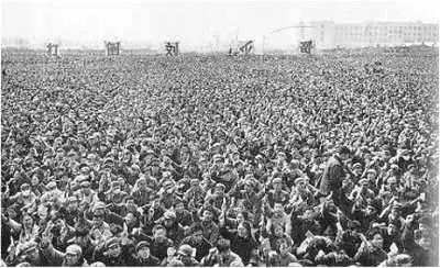 造反派將我拉到大操場。中央通知我是來檢查,可會場上完全是批鬥,自始至終不讓我講一句話。整個場面極為混亂,吵吵嚷嚷的,我什麼也沒聽清。我在批鬥會上看到,彭真、薄一波、陸定一、蔣南翔同志等好多老幹部老同志,也被造反派押在檯子上陪斗,心裏難過極了。批鬥會後,造反派將我押回房間裏,又審問了兩次。