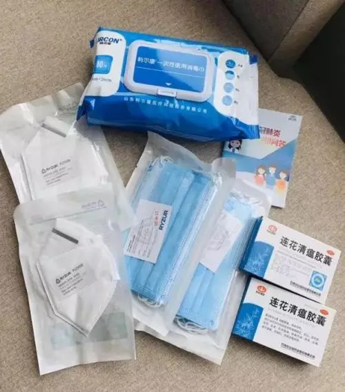 二十個一次性醫用口罩、兩個KN95口罩、兩盒連花清瘟膠囊、一包醫用消毒濕巾、一本新冠肺炎防護手冊……身在海外的中國留學生柏藝(化名)前幾天收到了大使館送來的健康包。
