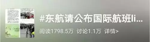 東航國際航班話題登上熱搜。