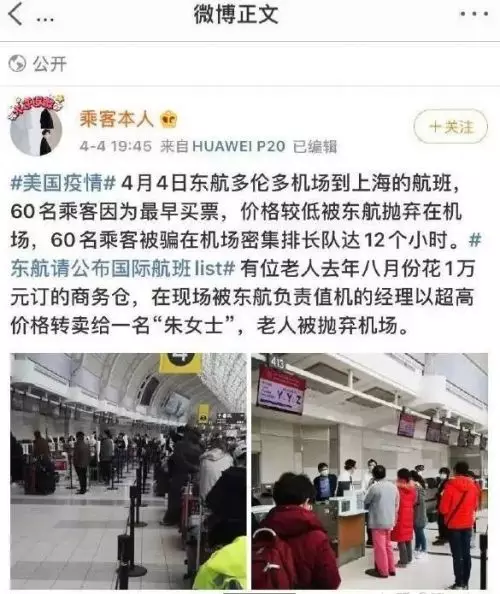 根據網友的投訴,東方航空4月4日從加拿大多倫多飛往上海的航班出現超售情況,數十名乘客在趕到機場後被告知無法乘坐,被迫滯留機場。