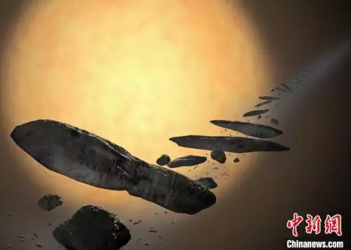 藝術家描繪的奧陌陌潮汐撕裂形成過程(來源:北京天文館/喻京川)。 國家天文台 供圖