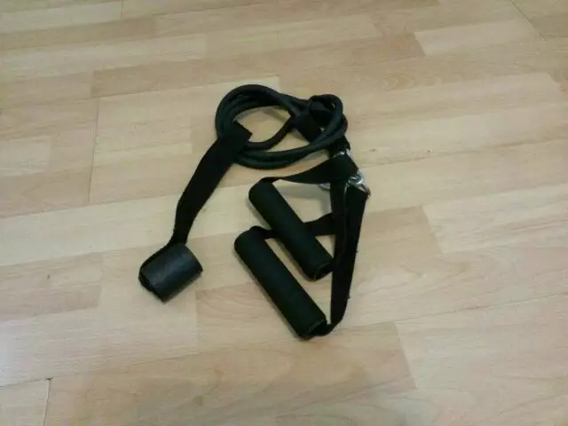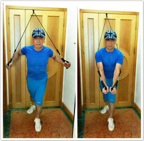 女士就同樣方法拉15-20下,等於輕一點重量,次數多一點。
