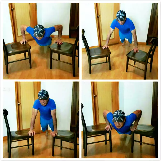 穩穩的雙手抓著杠,雙手距離略比肩寬(男士可以刻意增加握槓雙手的距離,鍛煉出更寬闊的背部 )放斜身體,單杠在胸部之上,手肘往地面發力,把胸部拉到最高,略停再下來,為之一下。