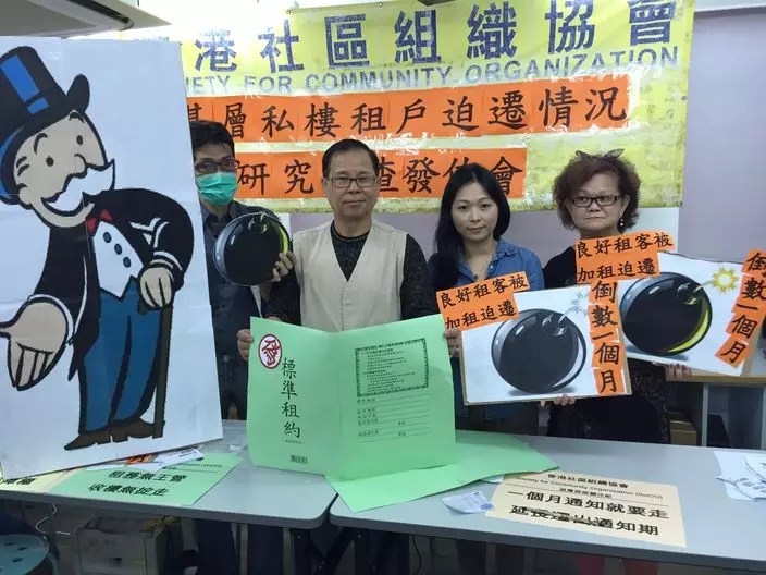 協會指,現時條例有漏洞,租金水平及加幅沒約束,加上現時業主毋須提供理由即可收樓,成為迫遷主要因素。調查亦顯示,接近一半人不知道業主身份,無法向業主聯絡議價及直接處理租務問題。九成分間單位租客表示,合約沒有打釐印,沒有法律效用,租客得不到任何法律保障。
