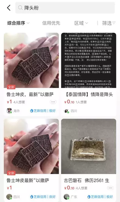在網購平台亦很容易就找到古曼童、降頭粉一類的產品。網上圖片