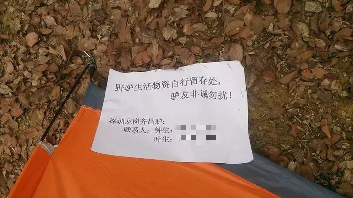 有行山人士拍得,在水浪窩營地,有超過十個營幕被放置,入面全部空空如也,營幕都貼上簡體字的字條,留有大陸聯絡方法,分別姓鍾及姓葉男子,寫上「深圳龍崗齊昌驢」。字條指「野驢生活物物資自行留存處,驢友非誠勿擾!」