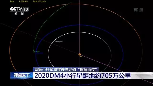 此外,紫金山天文台盱眙天文觀測站的近地天體望遠鏡於今年初新發現的一顆近地小行星2020DM4,也正在接近地球。2020DM4的直徑為160米左右、速度為6300米每秒,預計將於北京時間2020年5月1日18時05分左右飛掠地球,屆時離地球最近距離約為705萬公里。