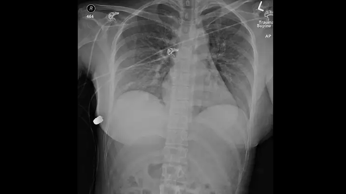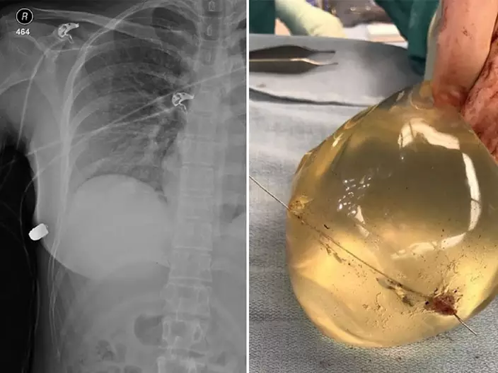 隆胸矽膠讓子彈偏離心臟,成功挽救她的性命。(網上圖片)