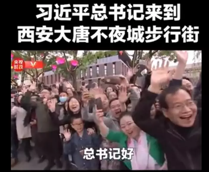 這是新冠肺炎爆發之後,習近平繼武漢、浙江之後,再赴地方視察。照片所見,習沒帶口罩,昨到大唐不夜城步行街考察,沿途遊客看見他,歡呼「主席好」。他笑容滿面,頻頻揮手致意,其後走進老字號西安飯莊,同店員和就餐顧客交談,強調要在科學防控疫情前提下,有序推動各類商場、市場復商復市,努力恢復正常生活秩序。