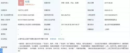 天眼查信息顯示,涉事機構所屬企業上海昶美文化傳播有限公司於2017年6月28日成立,註冊資本100萬元人民幣,註冊地址位於上海市金山區廊下鎮。