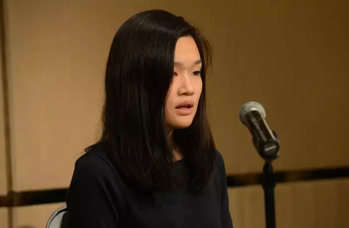 她說:「我平安無事……我的精神和身體都沒有因為今次綁架,而受到任何的打擊和任何傷害。」說至此聲調轉為傷感,稍停一下繼續說,要多謝爸爸媽媽的奔波勞累,微微點頭鞠躬說:「辛苦晒!」