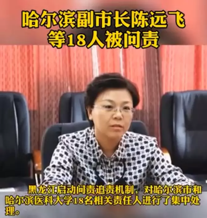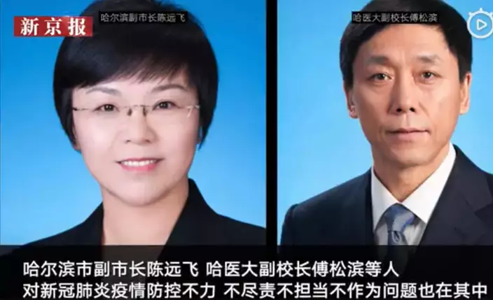 黑龍江省哈爾濱市副市長陳遠飛,哈爾濱醫科大學黨委常委、副校長傅松濱等人對新冠肺炎疫情防控不力,受到政務記過處分。