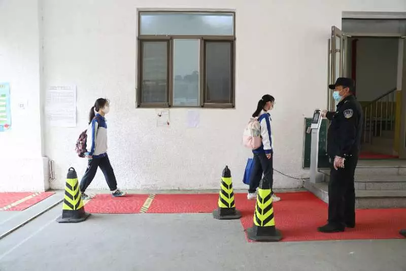 經過3個月的居家學習,複課首日,學生們一早就到了學校。記者在現場看到,不到8點已經有學生陸續進入校園,均佩戴口罩,通過紅外線測溫合格後,按學校要求的規定路線進班。隨著到校學生越來越多,學生開始按一米線依次排隊測溫登記,順序間隔入校。據了解,該校高三學年共248名學生,當天全部到校,未出現體溫超過37.3℃的情況。