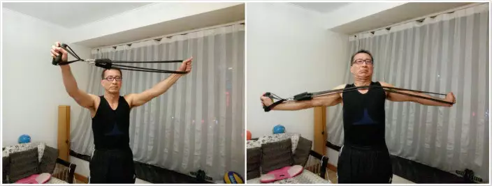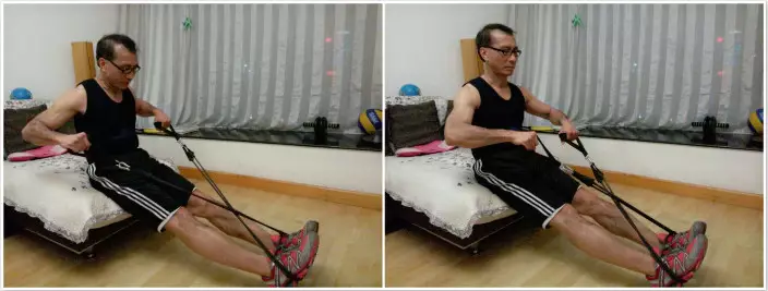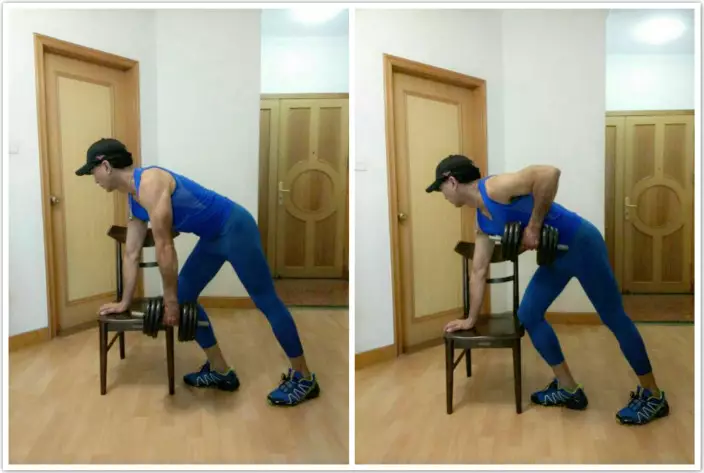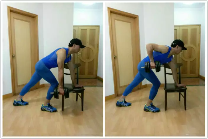 人肉呼啦圈後,盡量少或不休息,腳分開比肩寬站立,扶著椅背平衡,用腰部發力,提起右腿,至最高點略停再放下,做15–20下再換另一條腿。