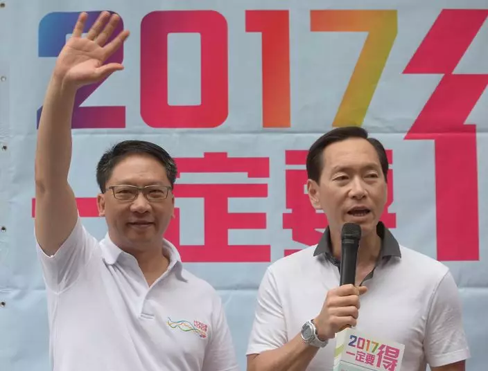 行政會議成員陳智思,陪同律政司司長袁國強到香港仔宣傳政改。