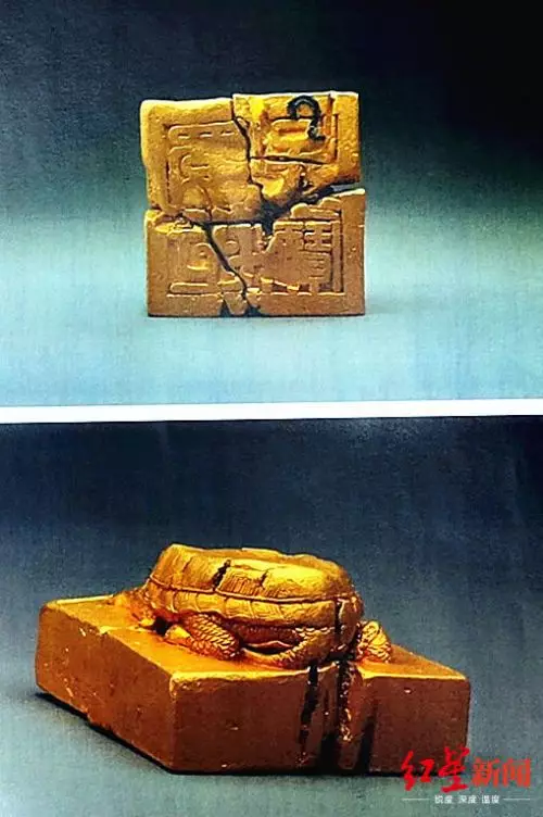 紅星新聞記者了解到,這枚金印出水時已被人斬成4塊金塊,雖然4塊金塊都找到了,但遺憾的是印上的龜形頭部暫未發現。儘管如此,這塊金印也有10多斤重,其含金量達到95%,遠超張獻忠的虎鈕永昌大元帥金印不到8成的含金量。