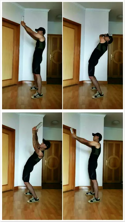 趴在地板或沙發等,墊好身體特別是下部,要舒服自然。以小腹為著地(接觸沙發)為中心,扳起上身和提起雙腿,身體成弓型,盡力保持姿勢,像一隻大鳥在飛,到極限就趴回地上,再重複動作,可以刻意提高右手左腿,左手右腿,鍛煉腰後側肌肉,做十多下,兩邊次數要平衡,不要造成偏一邊的腰部拉扯。