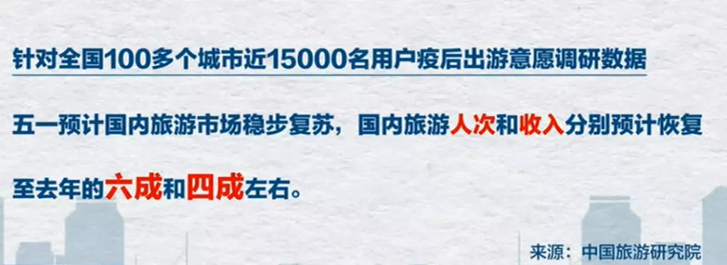 白岩松:針對全國100多個城市近15000名用戶「疫」後出遊意願調研報告,國內旅遊人次和收入分別預計恢復成去年六成和四成左右,怎麼看待這個數據?