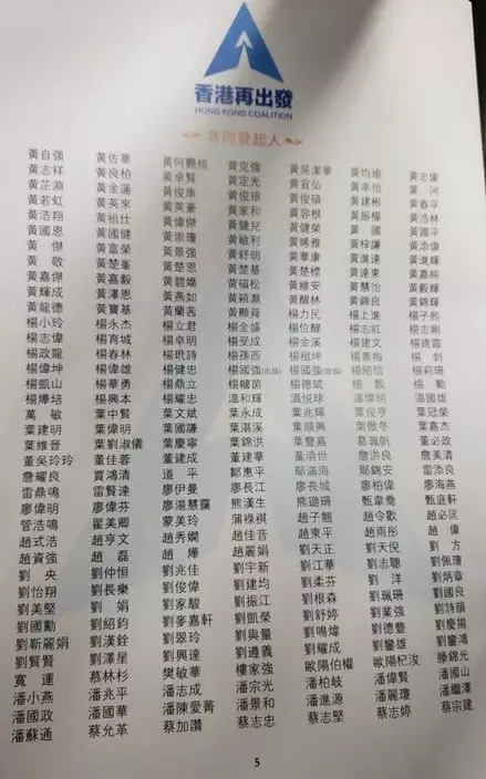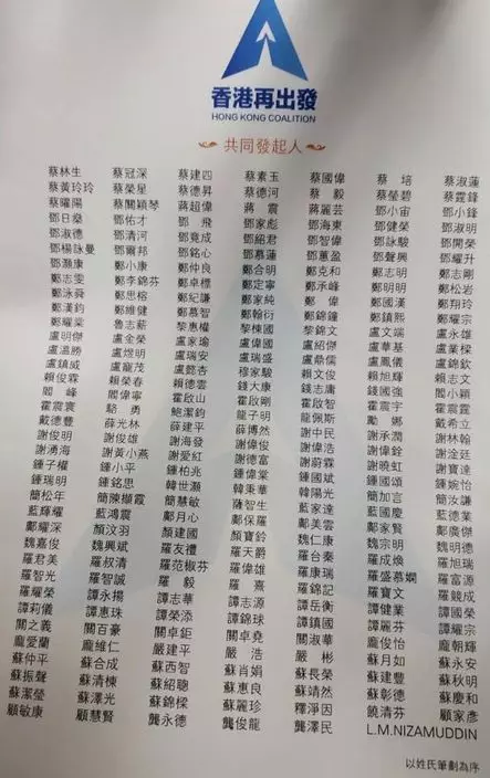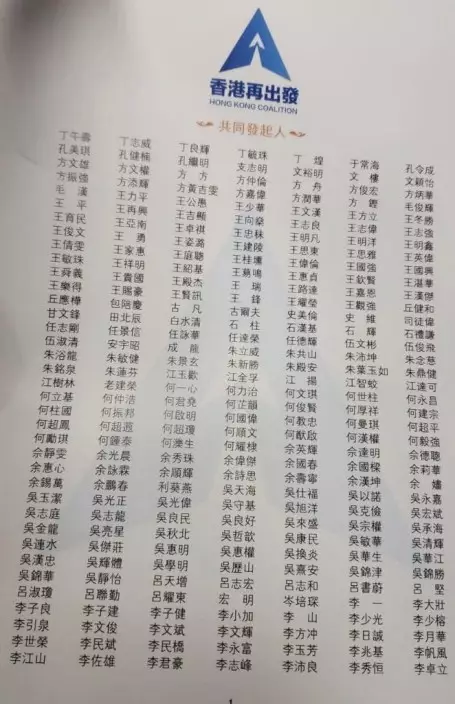 大聯盟有1545個發起人,除了傳統建制派之外,亦有一些中性人士。香港的主要家族全部落齊,包括長實李嘉誠及兒子李澤鉅及李澤楷都有加入;恆基李兆基及兒子李家傑;新世界鄭家純及兒子鄭志剛;新鴻基郭炳聯及姪兒郭基煇。大劉劉鑾雄、細劉劉鑾鴻,大劉兒子劉鳴煒亦有參與。