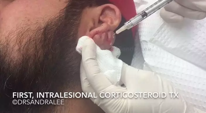 「爆瘡頻道」最新片段是一名男病人左耳珠下生了一粒與鼻子大小相若的「明瘡」,見到Sandra用手觸碰時已知道是重量級,瘡子外露佔耳朵一半。Sandra先為患者打麻醉針,這時已見有小許膿流出來,之後不斷在瘡上刺孔,再將一支粗針錐穿惡瘡直接貫穿,之後接駁工具急速冷凍。