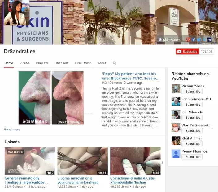 開設「爆瘡頻道」的是美國皮膚科醫生Sandra Lee,有「暗瘡爆者」封號,同時是皮膚癌專家及整容外科醫生。