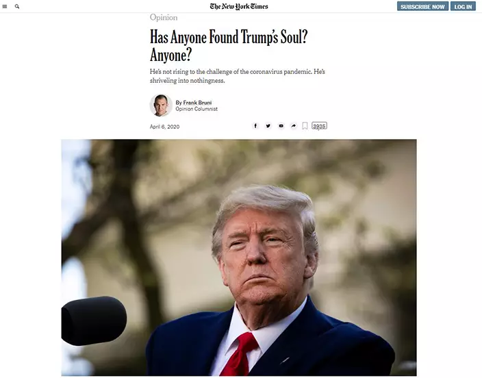 美國總統特朗普越嚟越離譜,搞到美國的精英十分之不滿,美國《紐約時報》最近發文,提問:「特朗普還有靈魂嗎?」全文值得細讀
