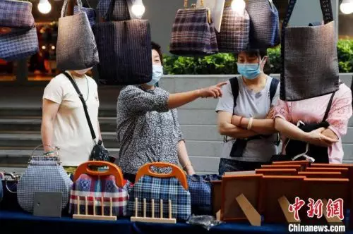 遊客在南京東路步行街上的假日集市購買物品。 殷立勤 攝
