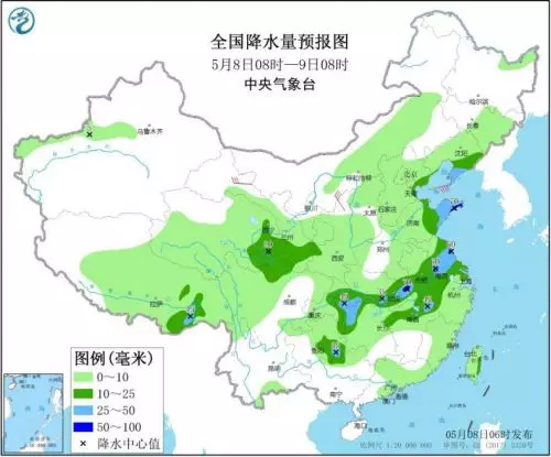 今天,降雨範圍依然廣泛,不過較強降雨區域明顯縮減,中到大雨主要在黃淮東部、江淮大部、江漢、江南北部等地。中央氣象台預計,青海東部、甘肅南部、遼東半島、山東半島、江淮、江漢南部、江南北部、貴州東南部等地的部分地區有中到大雨,其中,山東半島南部、江蘇中部、湖北東部等地局地有暴雨(50~80毫米)。