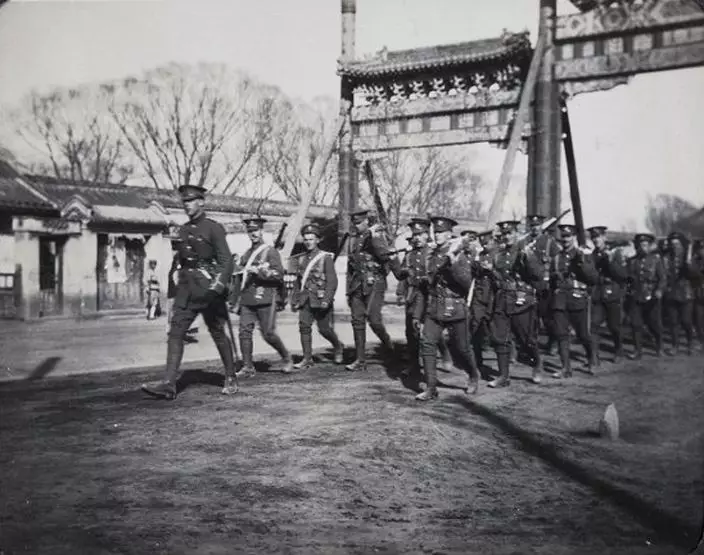 「北京兵變」發生後翌日,英國駐軍街上巡邏 (網上圖片)