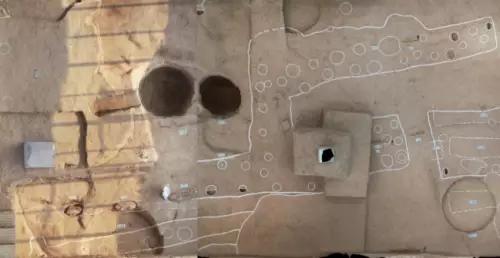 瓮城是古代城市的主要防禦設施之一,通常是在城門外或內側修建的半圓形或方形的護門小城。河洛古國的中心居址區已有典型的瓮城建築結構,可見居住者非同一般。這裏發現有4排大型房址,房址之間有巷道相通,其中最大的一個房子面積達220平方米,即使放到今天看也屬於豪宅。擺成北斗星形狀的九個陶罐就是在這所房子前面的門廊發現的。