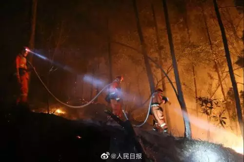 3月30日下午,西昌市瀘山突發森林大火,18名撲火隊員和1名嚮導不幸遇難。截至31日零時,過火面積1000公頃左右,毀壞面積初步估算80公頃左右。