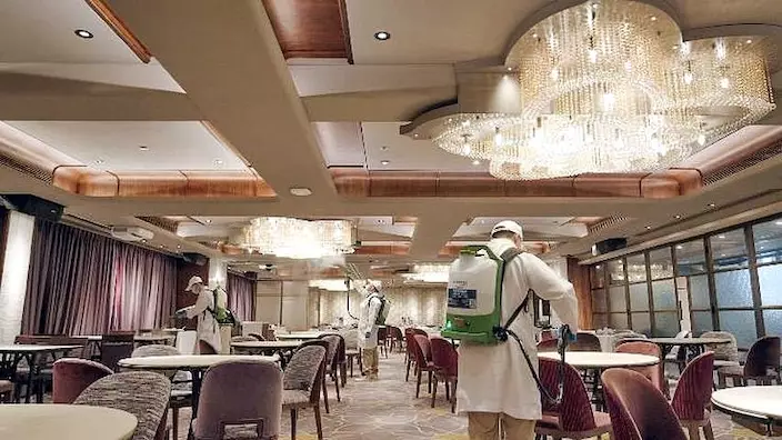 本港疫情趨緩和,政府今日起放寬部分社交距離措施,限聚令由4人放寬至不多於8人。有食肆為讓顧客食得安心,在餐廳噴灑長效智能殺菌塗層,覆蓋每個用餐接觸點,加強環境清潔消毒。