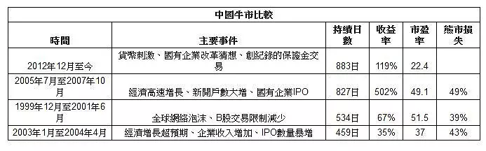 另外,報道又對比了中國目前牛市與前三次牛市的異同,供讀者參考。