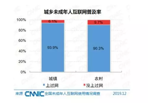 城鄉未成年人互聯網普及情況。圖片來源:文中報告