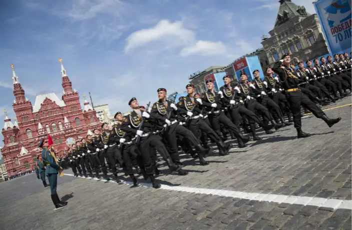 俄羅斯軍人踏步時要將下巴揚起受閱,彰顯自豪感。而中國軍人受特有的東方內斂文化影響則不要求揚起下巴,以避免被人解讀成有傲慢傾向。