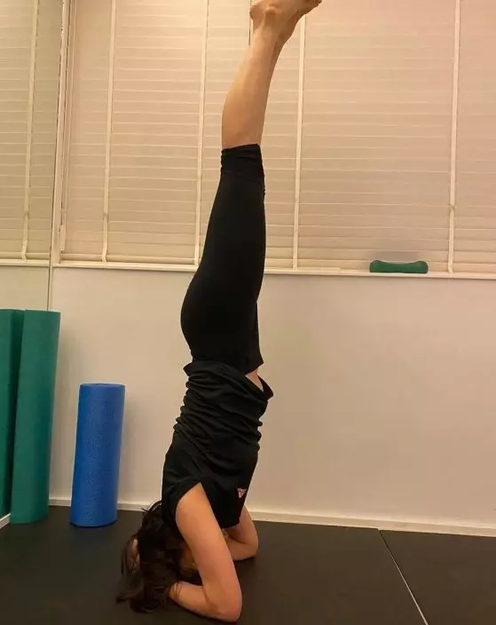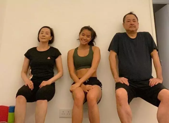 昨晚她上載兩張運動相,除自己在家中健身房做倒立外,仲拉埋老公區丁平及細女區亦山(Jill)做親子運動,三人身穿運動裝,齊齊貼住牆邊坐無影凳,相中素顏示人,毛姐神情輕鬆;而年紀輕輕嘅Jill面露笑容,似乎呢個動作難唔到她,反觀區丁平用手撐住雙腿,似乎比較吃力,但跟家人做運動,不失溫馨。毛姐留言說:「張這『梳化』幾舒服,歡迎大家來我家坐坐或跟我一起站著#食有時運動#有時鍛鍊毅力」