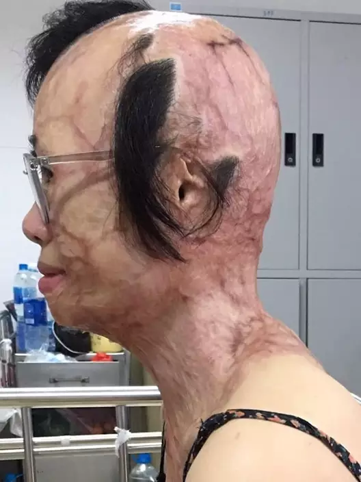 Huyen被送到醫院搶救,全身嚴重燒傷危殆,醫生多次對她的家人表示要作好心理準備。Huyen在5日後雖然逃離鬼門關,但是醒後發現自己已經毁容,全身疼痛無比,因此萌生自殺念頭。