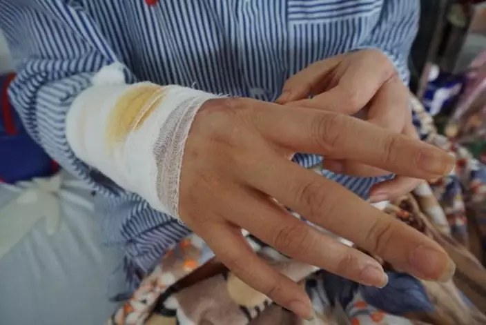 傷口使她痛楚萬分,她也咬緊牙根,慢慢重拾活動能力。(網上圖片)