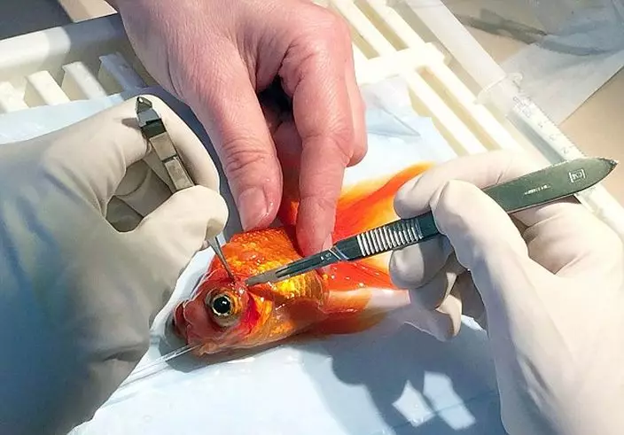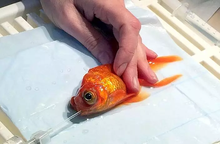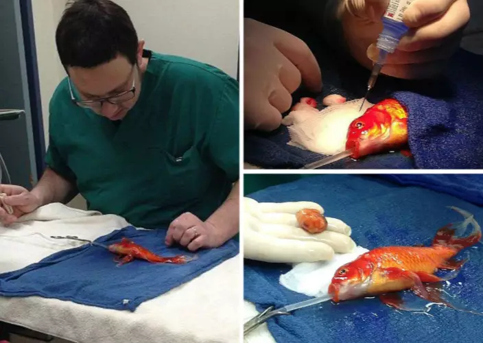 金魚動手術時有聽聞,英國北沃爾舍姆有主人今年初帶著心愛三吋金魚做手術解決長期便秘問題。