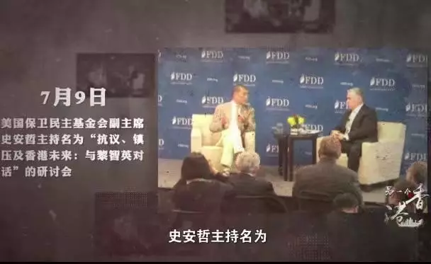 7月9日,美國保衛民主基金會副主席史安哲主持名為「抗議、鎮壓及香港未來:與黎智英對話」的研討會。