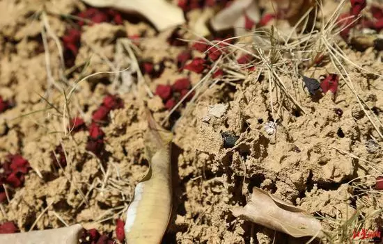 在芒果地里,羅吉明帶著紅星新聞記者找到蟻窩,撬開地表的散土,但未看到紅火蟻,「地下通道」縱橫交錯卻十分明顯。“被咬後,我用水沖淋,估計螞蟻都躲到地下深處了。”