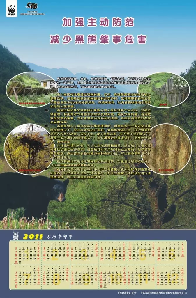 2011年世界自然基金會和中國有關部門製作的帶有防熊提示的日曆。