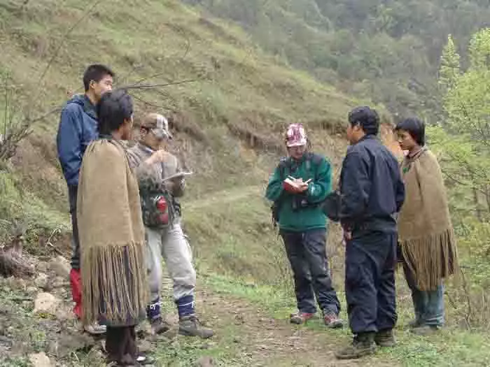 2005年,劉芳在涼山調查時與彝族群眾交談。